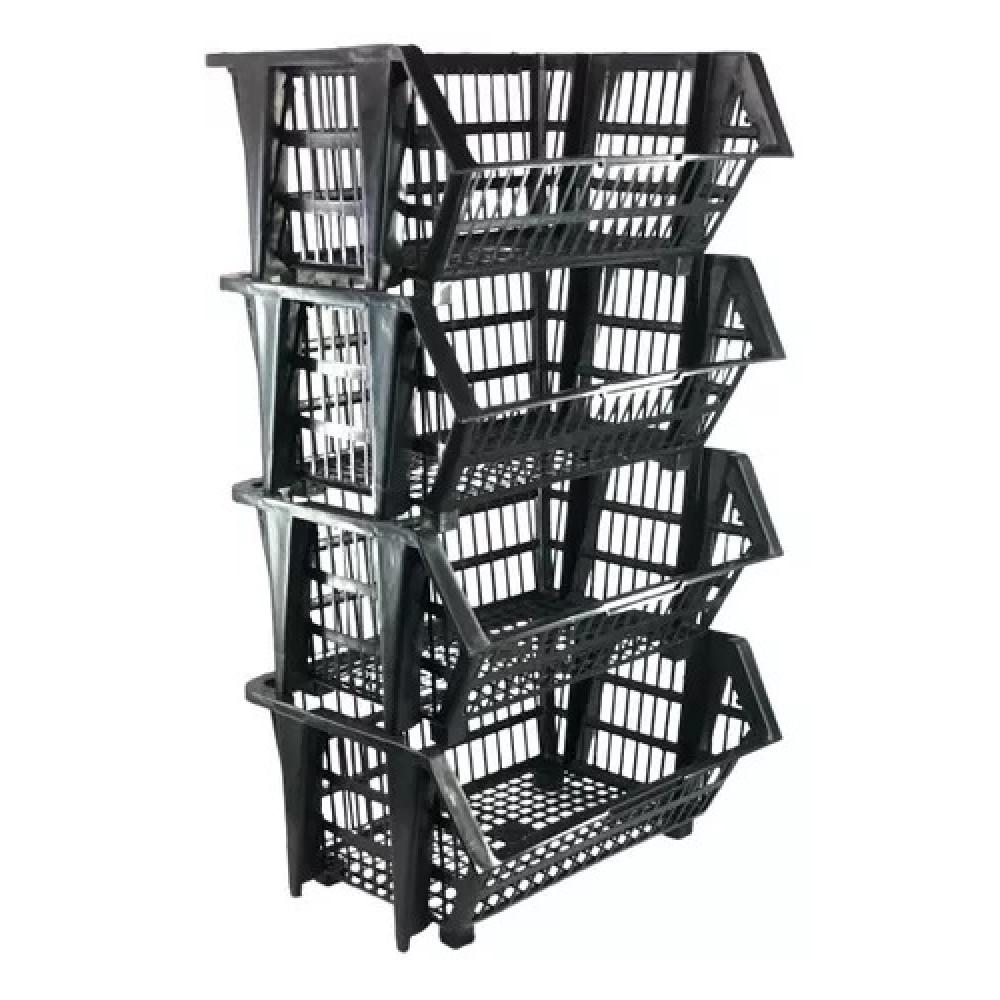 Otimização do Espaço : Os cestos empilháveis permitem aproveitar ao máximo o espaço disponível, especialmente em lojas com espaço limitado. Eles podem ser empilhados verticalmente quando não estão em uso, economizando espaço significativo.